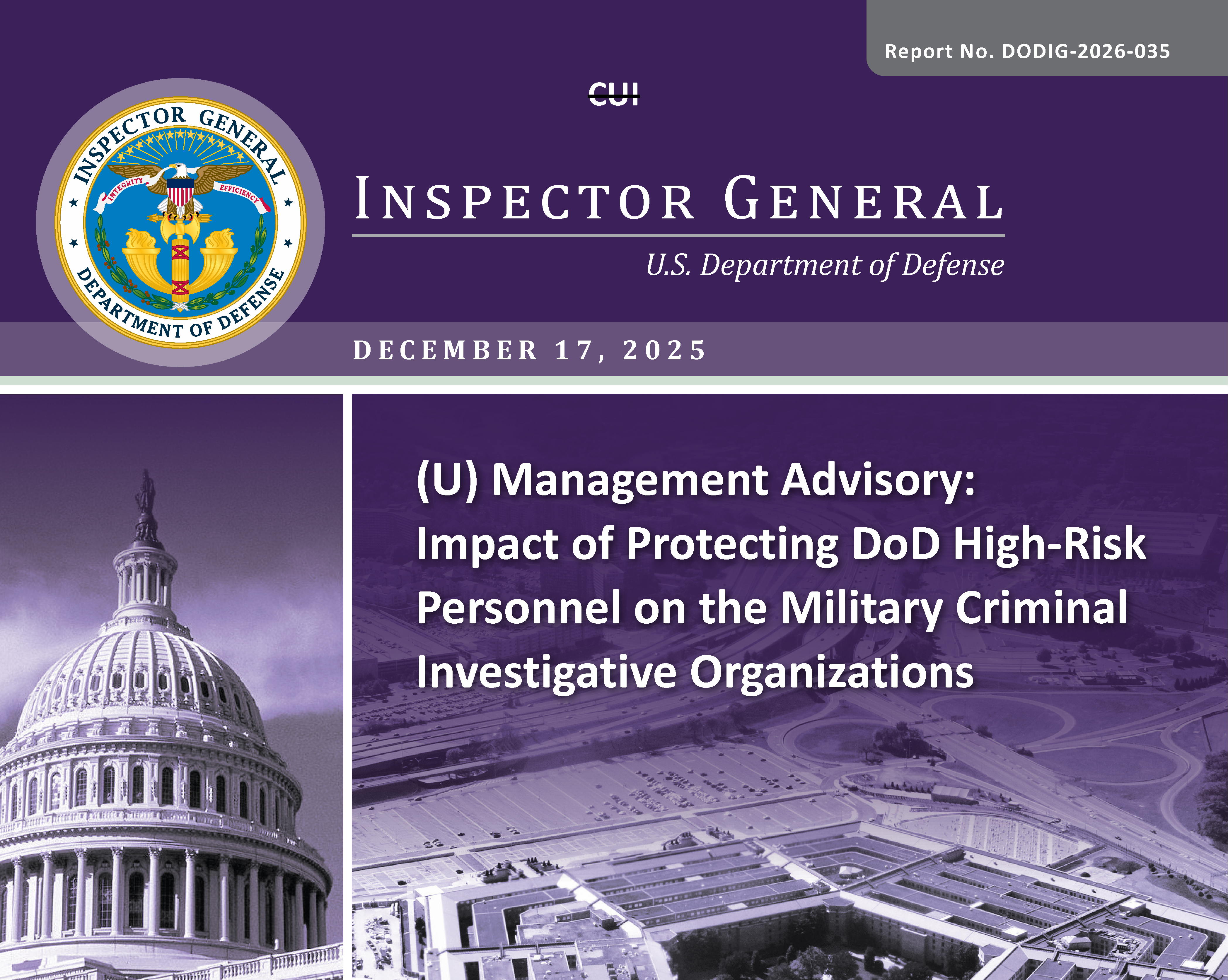 Management Advisory: Impact of Protecting DoD High-Risk Personnel on the Military Criminal Investigative Organizations (Report No. DODIG-2026-035)
