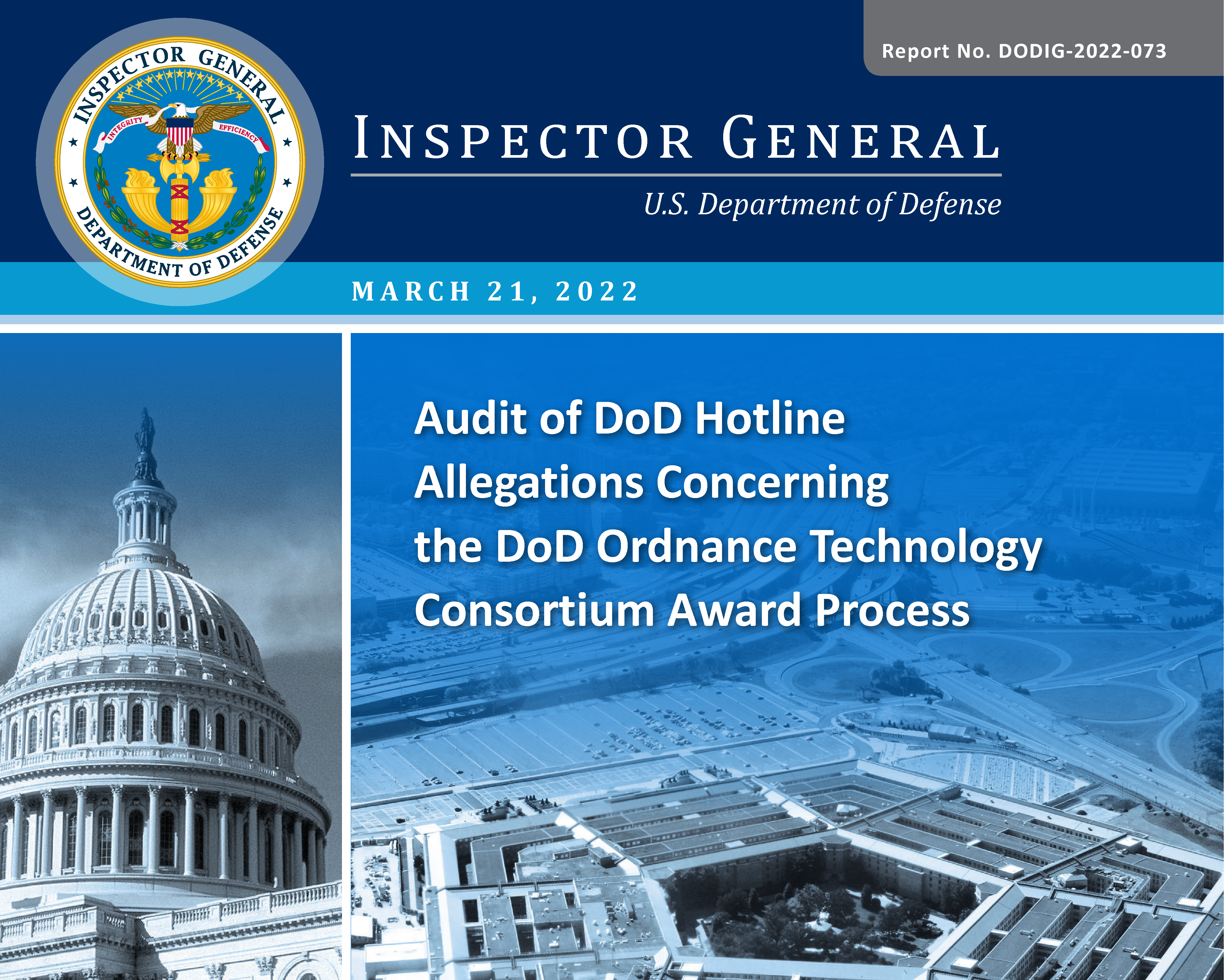 The objective of this audit was to determine whether Army Contracting personnel, in coordination with DoD Ordnance Technology Consortium (DOTC) Program Office personnel, awarded other transactions (OT) in accordance with applicable Federal laws and DoD policies; and the DOTC award process provided for the use of competitive procedures to the maximum extent practicable. We initiated this audit based on a complaint the DoD Office of Inspector General received through the DoD Hotline. The complainant alleged that the DOTC OT award process did not provide for competition to the maximum extent practicable as required. The hotline complaint made three main allegations: (1) the page limit on white paper submissions potentially limited competition, (2) white paper evaluation criteria were inconsistently applied, and (3) white paper ratings were changed after evaluations.