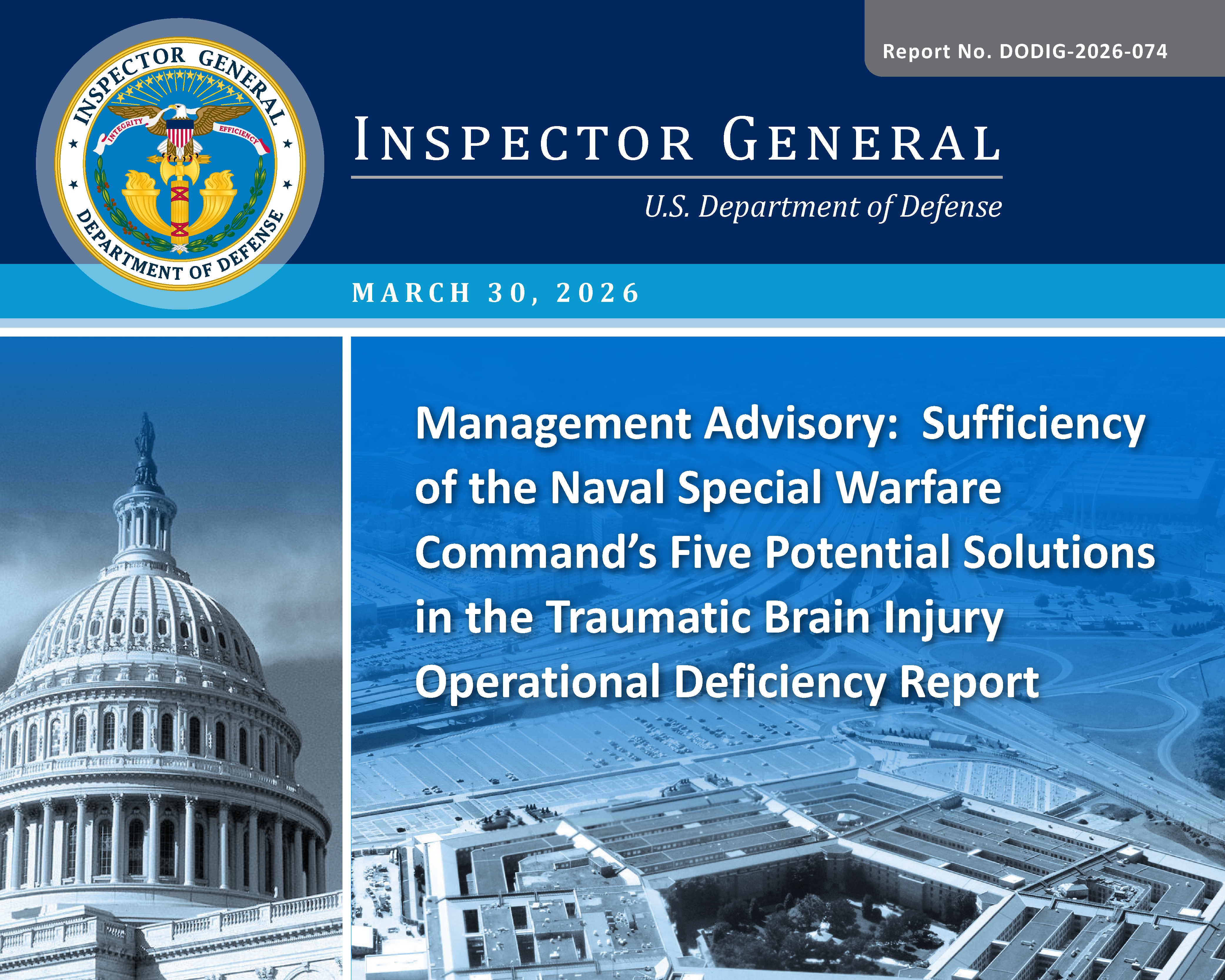 This final management advisory identifies concerns found during the DoD Office of Inspector General’s “Evaluation of the Effectiveness of DoD Policies and Procedures for Identifying and Evaluating Traumatic Brain Injury for Naval Special Warfare Personnel” (Project No. D2025‑DEV0HB‑0129.000).
